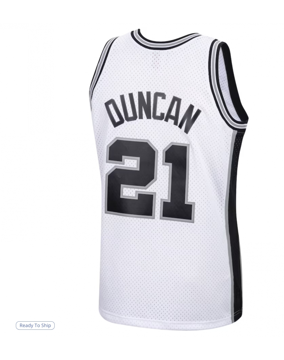 Reviews Over Men's San Antonio Spurs Tim Duncan Mitchell & Ness White 1998/99 Hardwood Classics Swingman Jersey