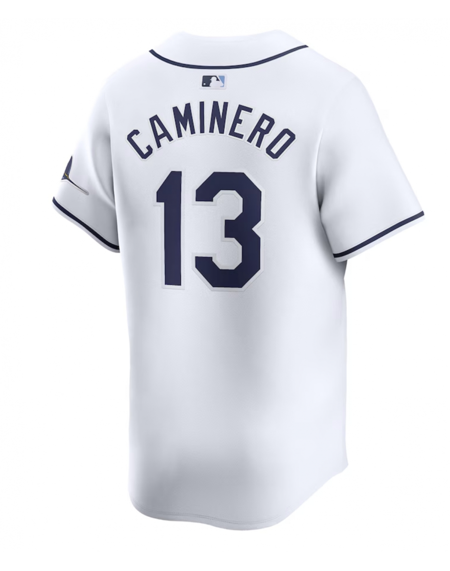 Men's Tampa Bay Rays Junior Caminero Nike White Home Limited Player Jersey